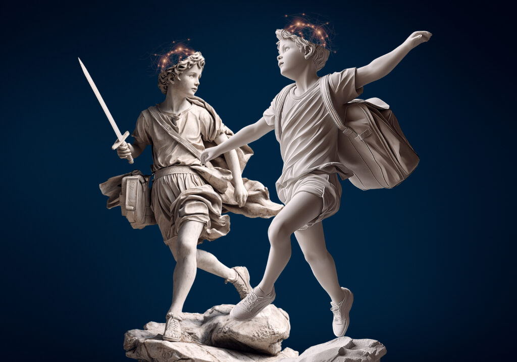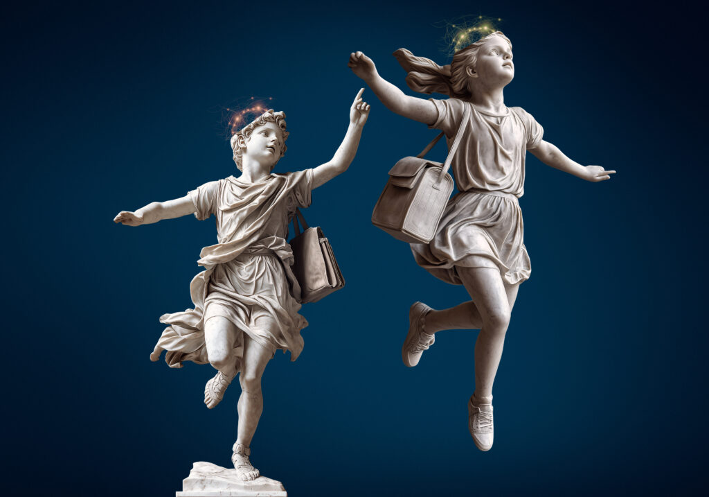 Die einzelnen Themenblöcke wurden illustrativ gewichtet. Ki-Bildentwicklung in Kombination mit manuellem Compositing und Retusche.